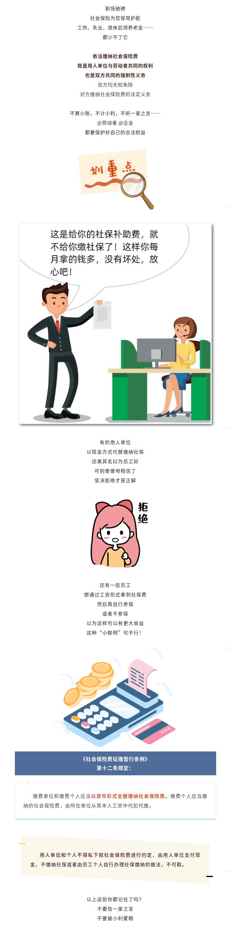 【人社政能量(liang)】用支付現(xiàn)金方式取代(dai)繳社(she)保,不行!