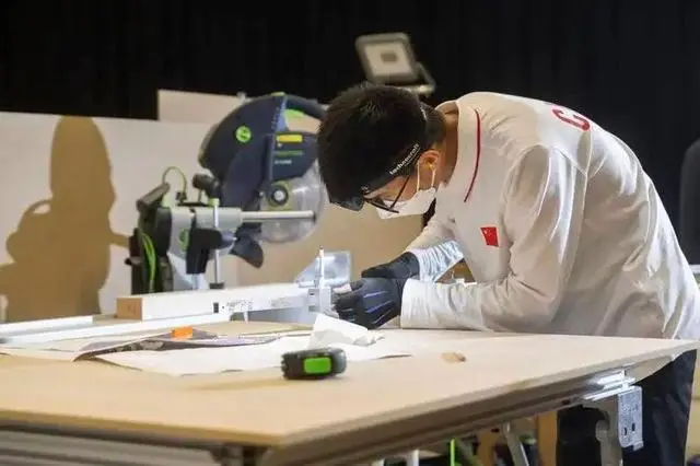 中(zhong)國(guó)選(xuan)手邵茹鵬正在參加精細(xì)木工項(xiàng)目比賽。