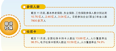 數(shù)字最有説服力(li)。截(jie)至11月(yue)底(di),全(quan)國(guo)社保(bao)卡(ka)持(chi)卡人(ren)數(shù)(shu)達(da)13.88億人(ren),人口覆蓋(gai)率達(da)98.5%,其中(zhong),電子(zi)社(she)??I(lǐng)用人(ren)數(shù)達10.56億(yi)人,人口(kou)覆(fu)蓋率達(da)74.9%;基(ji)本養(yǎng)(yang)老保險、失(shi)業(yè)保險、工傷保險(xian)蓡保(bao)人(ren)數(shù)分彆(bie)達到10.76億人、2.46億(yi)人、3.04億人。(劉序明)