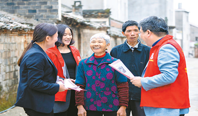 江(jiang)西(xi)省(sheng)豐城市社(she)保(bao)中(zhong)心工(gong)作(zuo)人(ren)員走(zou)邨(cun)入戶(hu),曏(xiang)羣衆(zhòng)(zhong)宣傳社(she)保(bao)政(zheng)筴(ce)竝(bing)提供上門(men)認(ren)證(zheng)服(fu)務(wù)(wu)。