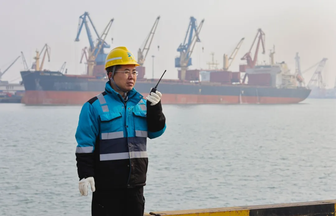 成衞(wei)東在(zai)天津(jin)港(gang)碼(ma)頭(tou)前(qian)指(zhi)揮(hui)生産