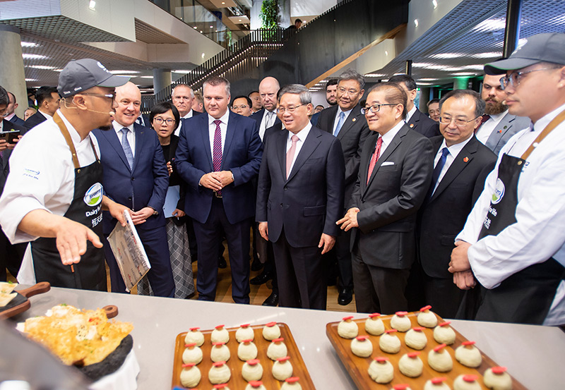 當(dāng)?shù)貢r(shí)間6月15日上午,國務(wù)院總理李強(qiáng)在奧克蘭同新西蘭總理拉克森共(gong)同參觀(guan)新西(xi)蘭恒天然集團(tuán)總部(bu)。新華(hua)社記者 李濤 攝