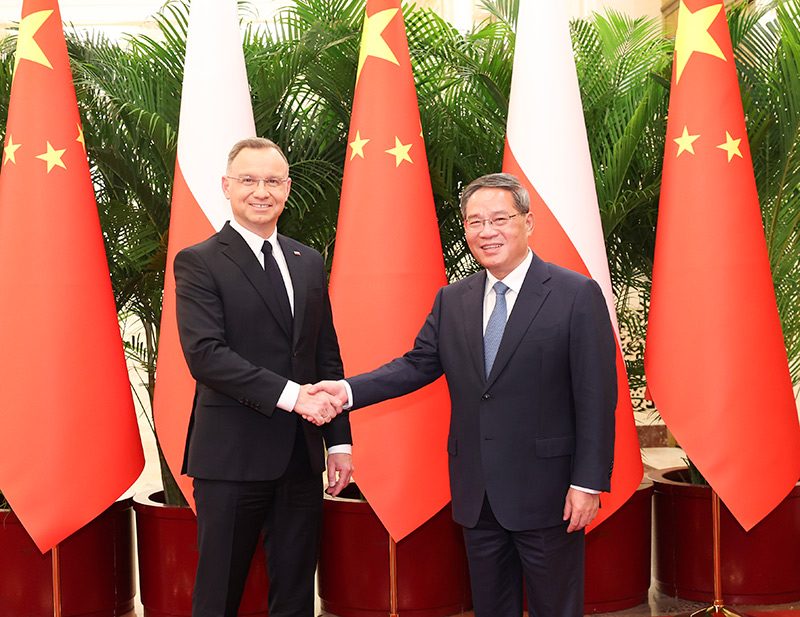 6月(yue)24日上午,國(guó)務(wù)院(yuan)總理李強(qiáng)在北京人(ren)民(min)大會(huì)(hui)堂會(huì)見(jiàn)來(lái)(lai)華(hua)進(jìn)行國(guó)事訪問(wèn)的波蘭總統(tǒng)杜達(dá)。新華社記者 龐興雷 攝