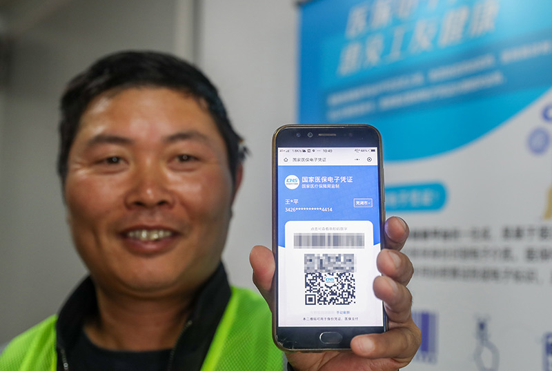 來自安徽(hui)的農(nóng)民工(gong)王(wang)亞平展示(shi)已激活的醫(yī)保電子(zi)憑(ping)證(2020年10月20日攝(she))。新(xin)華社記者 丁汀 攝