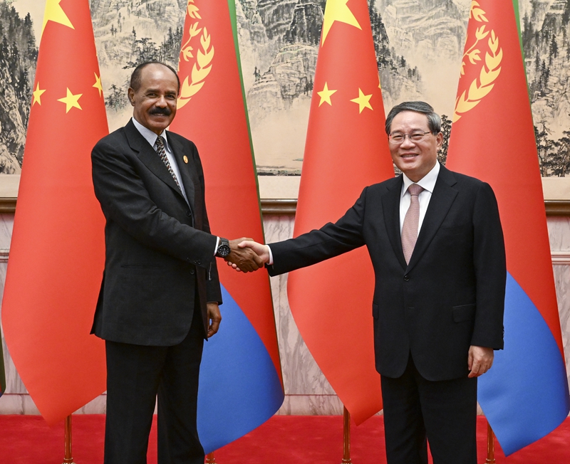 9月3日(ri)上午,國務(wù)院總理李強在北京釣魚臺國賓館會見來華出席中(zhong)非合作論壇北京峰會的厄立特里(li)亞總統(tǒng)(tong)伊薩亞斯。新華社記者 饒愛民 攝