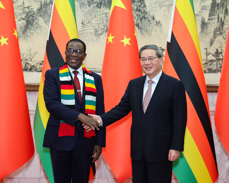 9月3日下午,國(guo)務院總理李強(qiang)在北京釣魚臺國賓館會見來華出席(xi)中非(fei)合(he)作論壇北京峰會并進行國事訪問(wen)的津(jin)巴布韋總(zong)統(tǒng)姆(mu)南加古瓦。新華社記者 劉彬 攝?