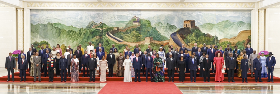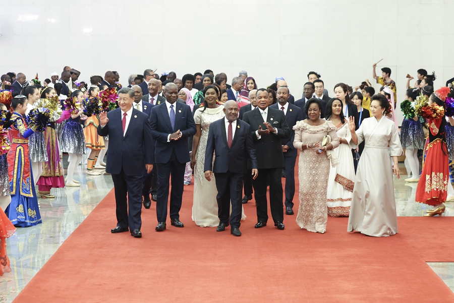出席論壇峰會(huì)的51個(gè)非洲國(guó)(guo)家元(yuan)首、政府首腦(nao)及配偶,2位總統(tǒng)代表,非盟委員會(huì)主席和(he)聯(lián)合國(guó)秘書長(zhǎng)等貴賓陸續(xù)抵達(dá)人民大會(huì)堂。習(xí)近平和彭麗媛熱(re)情迎接,同(tong)他們分別握手問候,并集體合影留念。