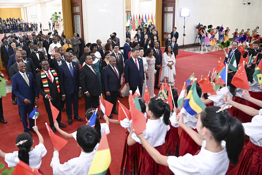 9月4日晚(wan),國(guó)家主席習(xí)近(jin)平和夫(fu)人彭麗媛在北京人民大會(huì)堂舉行宴會(huì),歡迎來華出席中非合作論(lun)壇北京峰會(huì)的非方及國(guó)際貴(gui)賓(bin)。這是在前往宴會(huì)廳沿途,少年兒童對(duì)國(guó)際貴賓表示熱烈歡迎。新華社記者 張領(lǐng) 攝(she)
