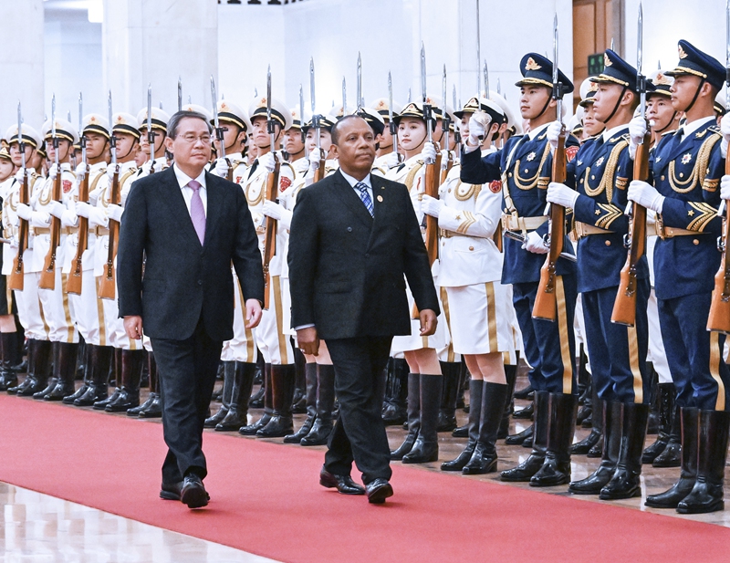 會(hui)談前,李強(qiáng)在人民大會堂中央大廳為特羅瓦達(dá)舉行歡迎(ying)儀式。