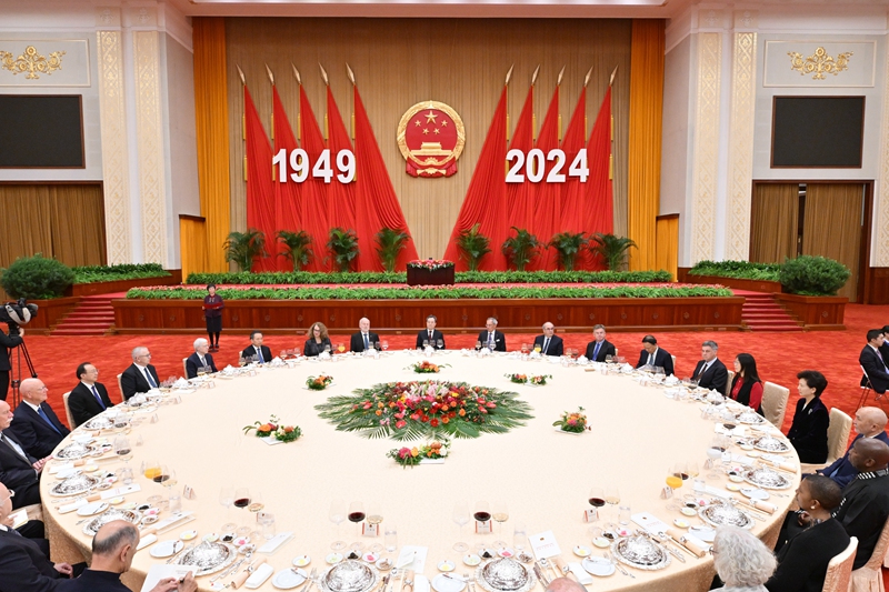 9月27日晚,慶(qing)祝中華人民共和國成立75周年(nian)外國專家招待會在北(bei)京人民大會堂舉行,中共中央(yang)政治局常(chang)委、國務院副總理丁(ding)薛(xue)祥出席并(bing)致(zhi)辭。新華社(she)記(ji)者(zhe) 李響 攝