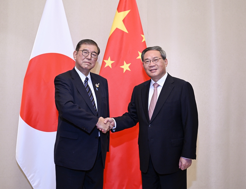 當?shù)貢r間10月10日,國務院(yuan)總理李強在萬象出席東亞合作領導人系列(lie)會議期間會見日本首相石破茂。新華社記者(zhe) 張領 攝