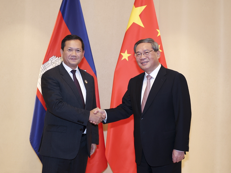 當(dāng)?shù)貢r(shí)間10月10日,國(guó)務(wù)院總理李強(qiáng)在(zai)萬(wàn)象出席東(dong)亞合作領(lǐng)(ling)導(dǎo)人系列會(huì)議期(qi)間會(huì)(hui)見(jiàn)(jian)柬埔(pu)寨首相洪瑪奈。新華社記者 丁海濤 攝(she)