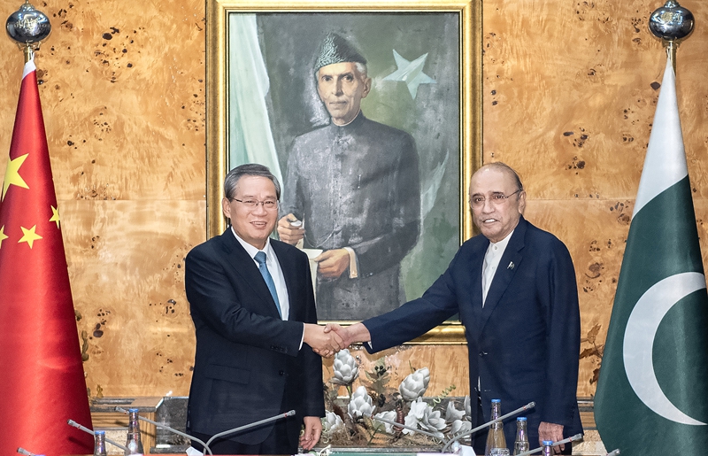 當(dāng)?shù)貢r間10月15日,國務(wù)院總(zong)理李強在巴基斯坦總統(tǒng)府會見巴基斯坦(tan)總統(tǒng)扎爾達里(li)。新華社記者 李(li)濤(tao) 攝