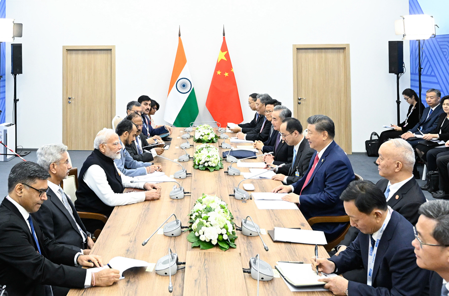 習(xí)近平指出,中(zhong)國和印度同為(wei)文明古國、發(fā)展中大國、全球南方重要成員,都處在各(ge)自國家(jia)現(xiàn)代化建設(shè)的關(guān)鍵時(shí)期。中印正確(que)把(ba)握歷史潮流和兩國關(guān)系發(fā)展方向,符合兩國和兩國人民根本利益。雙方(fang)應(yīng)該加強(qiáng)溝通合(he)作(zuo),增進(jìn)戰(zhàn)略互(hu)信,相互成(cheng)就(jiu)彼此發(fā)展夢想。雙方也要肩負(fù)起國際責(zé)任,為廣大發(fā)展中國家(jia)聯(lián)合自強(qiáng)作出表率,為推動(dòng)世界多極化、國際關(guān)系(xi)民(min)主化作出貢獻(xiàn)。