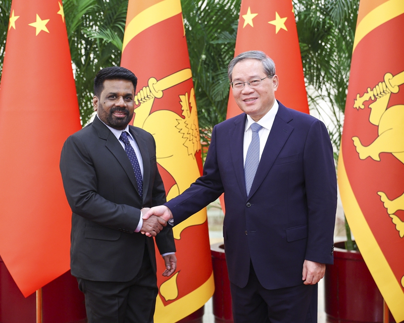 1月16日下午,國務(wù)院總理李(li)強(qiáng)在北京人民大(da)會(huì)(hui)堂(tang)會(huì)見來華進(jìn)行國事(shi)訪問的斯里蘭卡(ka)總統(tǒng)(tong)迪薩納(na)亞克。新華社記者 劉彬 攝