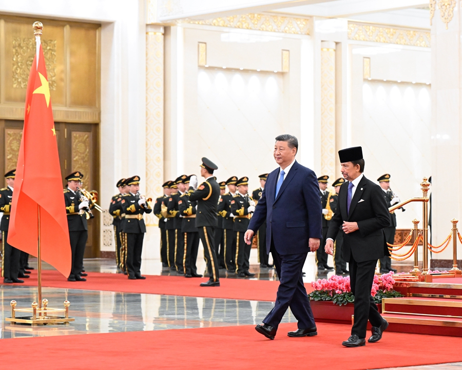 2月6日上午,國家主席習(xí)近平在(zai)北京人民大會堂同(tong)來華進(jìn)行國事訪問的文萊蘇(su)丹(dan)哈桑納爾舉行會談(tan)。這是會談前,習(xí)近平在人民大會堂北大廳為哈桑納爾舉行歡迎儀式。新(xin)華社記(ji)者 高潔 攝