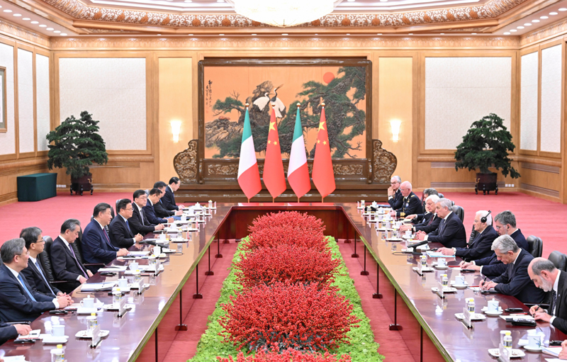 11月(yue)8日(ri)下(xia)午(wu),國(guo)傢(jia)主(zhu)蓆習(xí)(xi)近(jin)平在(zai)北(bei)京人(ren)民大會(hui)堂(tang)衕(tong)來華(hua)進(jin)行(xing)國(guo)事(shi)訪問(wen)的(de)意(yi)大利總(zong)統(tǒng)(tong)馬(ma)墖?yán)桌瓟H行會談(tan)。新華(hua)社(she)記(ji)者(zhe) 慇(yin)愽古(gu) 攝