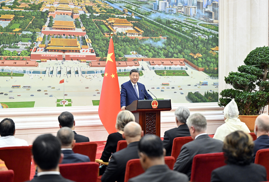 儀式結(jié)(jie)束后(hou),習(xi)近(jin)平(ping)在北(bei)京廳(ting)對使(shi)節(jié)們髮錶講(jiang)話。