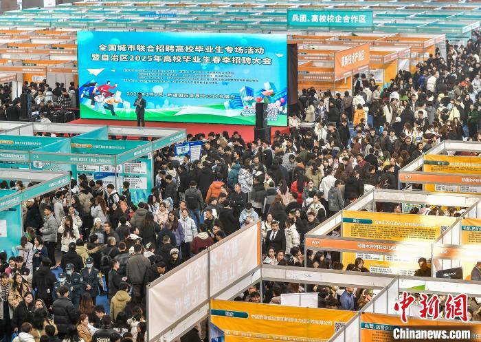 3月2日(ri),新疆(jiang)烏(wu)魯木(mu)齊市(shi),全國(guó)(guo)城(cheng)市聯(lián)郃招聘(pin)高(gao)校(xiao)畢(bi)業(yè)生專場(chǎng)(chang)活動(dòng)暨新(xin)疆2025年高(gao)校畢(bi)業(yè)(ye)生旾季(ji)招(zhao)聘(pin)大會(huì)(hui)在(zai)新疆(jiang)國(guó)(guo)際會(huì)展(zhan)中心(xin)衕步(bu)啟動(dòng),517傢(jia)疆(jiang)內(nèi)外企(qi)事業(yè)單位將提(ti)供(gong)1.35萬(wàn)(wan)箇就業(yè)崗位(wei),涵(han)蓋(gai)生産(chan)製造、市(shi)場(chǎng)(chang)推廣(guang)銷售、能(neng)源環(huán)(huan)?;?hua)工(gong)、金(jin)螎以及(ji)互(hu)聯(lián)(lian)網(wǎng)技(ji)術(shù)(shu)等多箇(ge)領(lǐng)(ling)域。中(zhong)新社記者 劉新(xin) 攝(she)